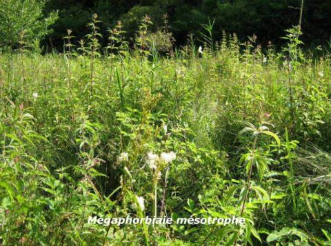 Ces végétations sont denses et hautes composées de nombreuses espèces herbacées à feuilles larges et floraison vive. Elles sont typiques des bordures des cours d’eau ou des lisières et clairières de boisements humides. Elles s’installent sur des sols alluviaux très humides avec présence d’une nappe temporaire. Les sols sont riches en matières organiques mais pauvres en azote. Elles ne subissent aucune action anthropique.